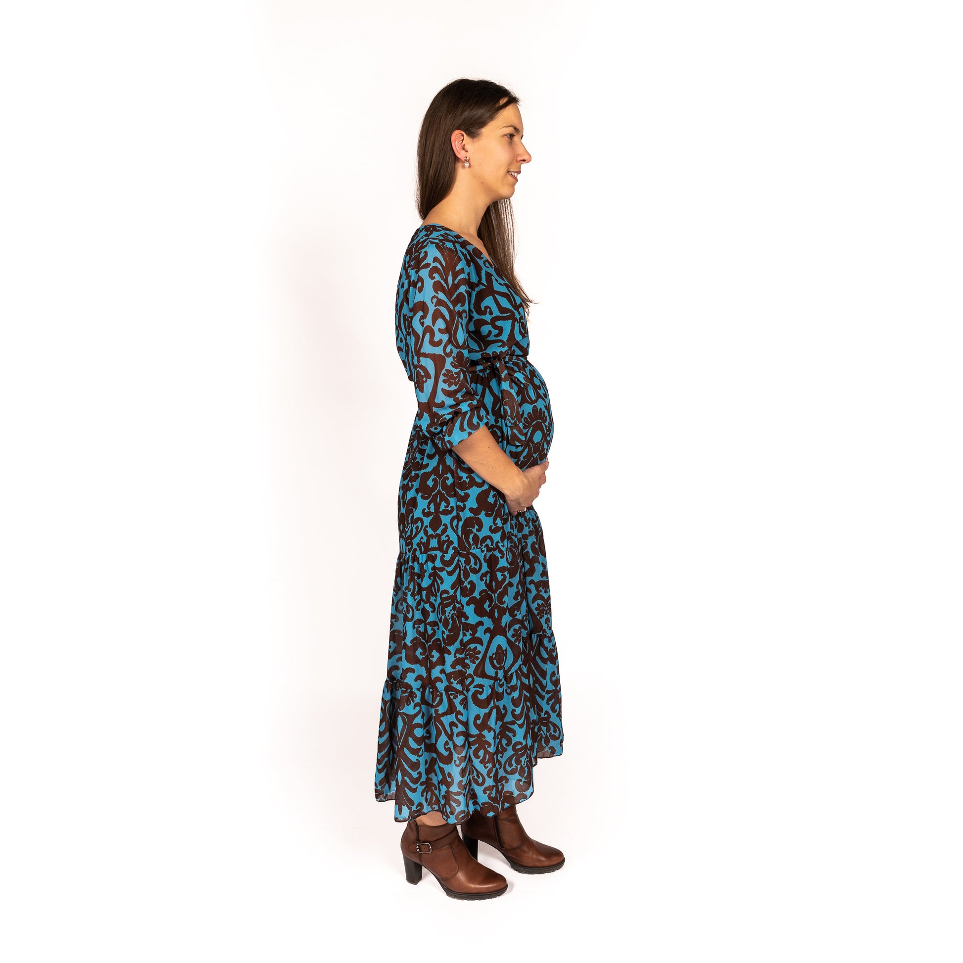 Deze jurk heeft een riempje in dezelfde stof en bovenaan een overslag, die je wat opzij kunt halen om je kleintje toegang te geven tot de borst. De stof valt lekker soepel waardoor deze jurk ideaal is in alle situaties: zwanger of niet, borstvoeding of niet: het kan allemaal! Het is een taille unique die verkrijgbaar is als lange jurk of tot op kniehoogte. Welke is jouw favoriet?