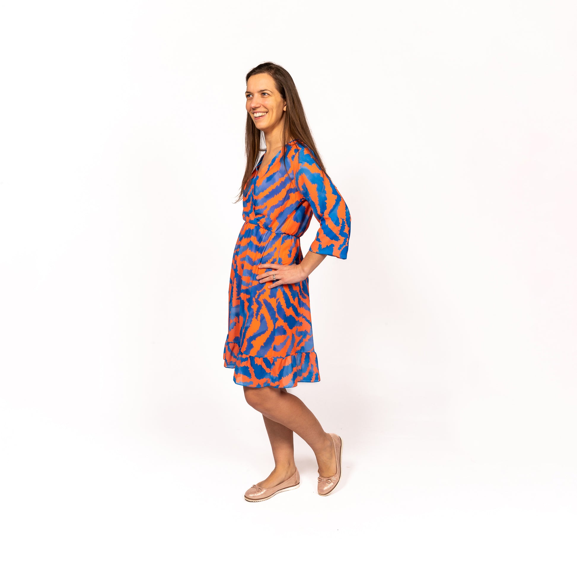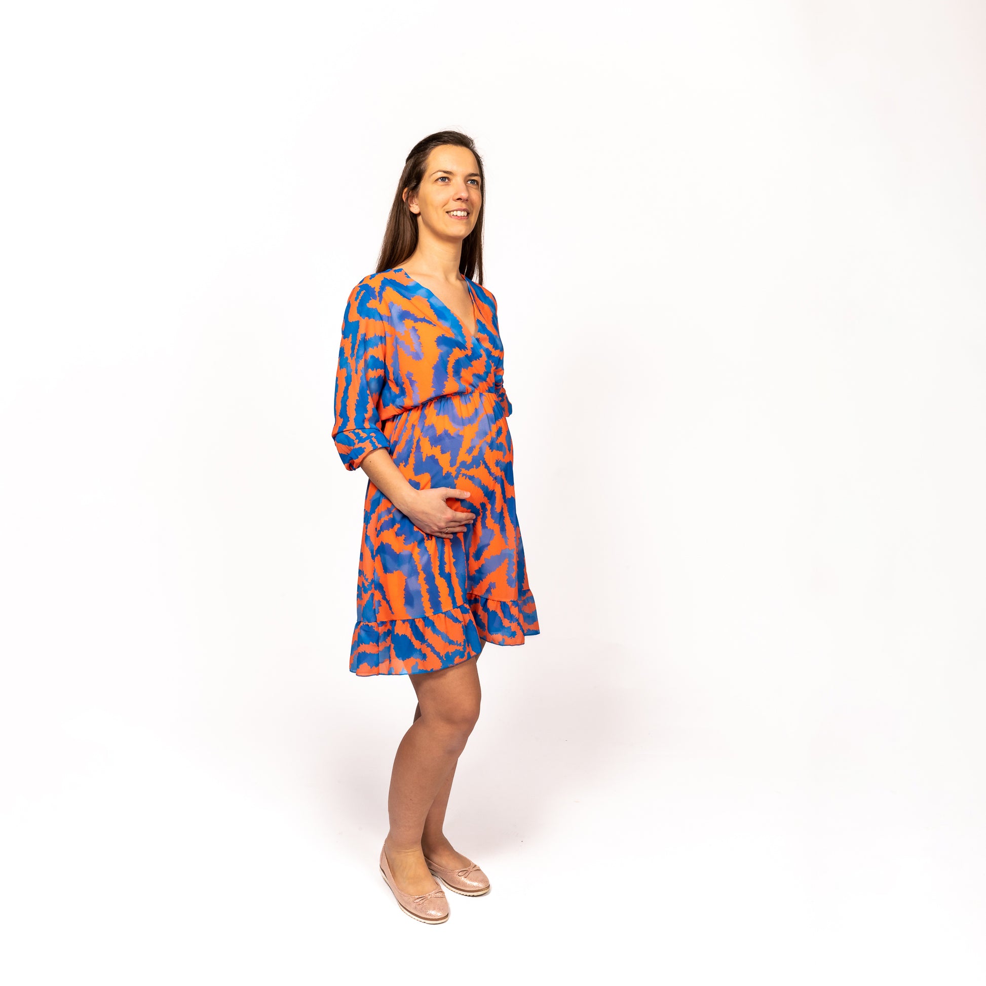 Dit jurkje heeft bovenaan een overslag, die je wat opzij kunt halen om je kleintje toegang te geven tot de borst. De stof valt lekker soepel waardoor deze jurk ideaal is in alle situaties: zwanger of niet, borstvoeding of niet: het kan allemaal!