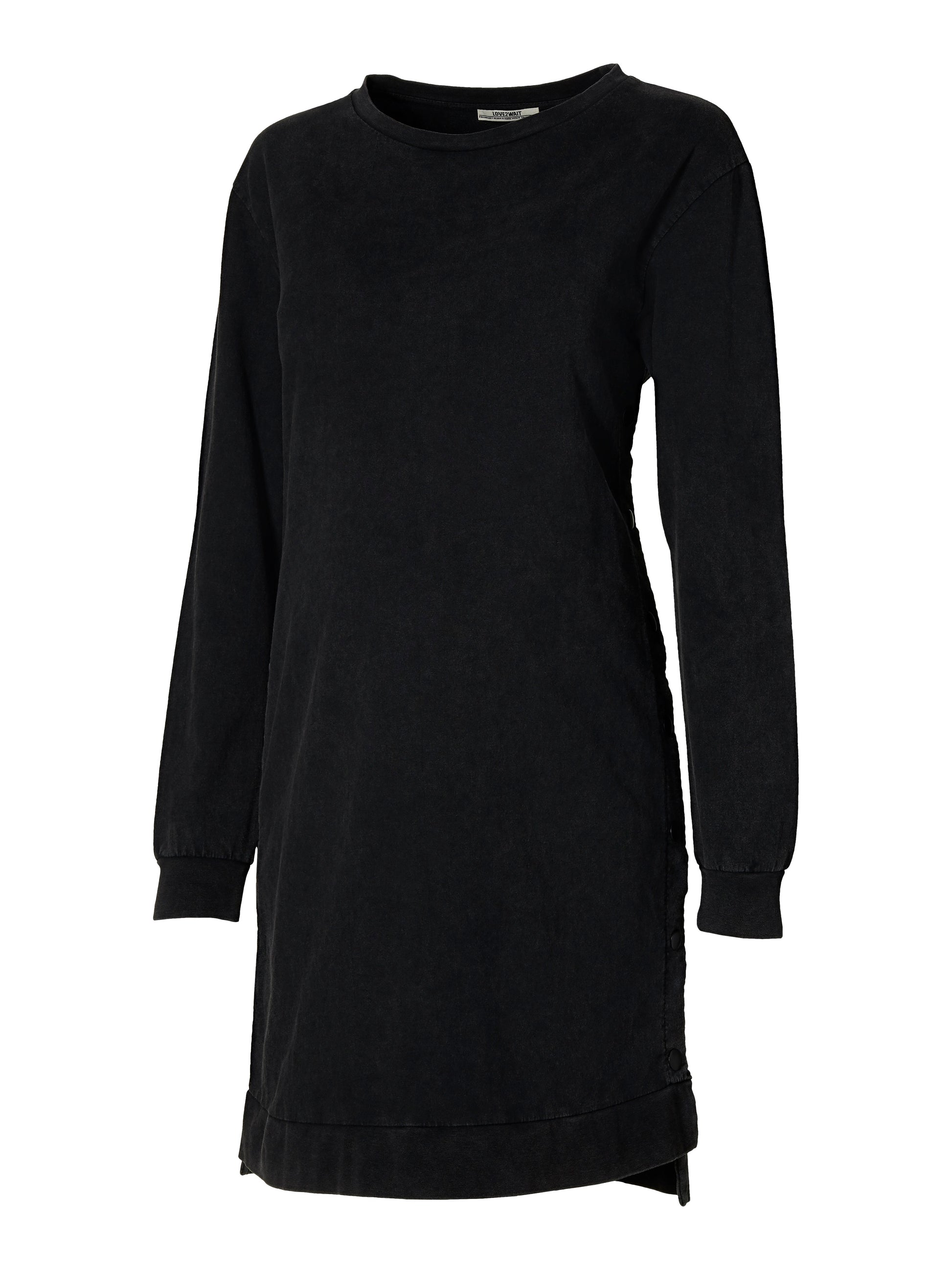 Zwangerschapsjurk in sweaterstof en knopen aan de zijkant om borstvoeding te geven. Laat hier maandenlang jouw zwangere buik in groeien en draag deze sweater na de zwangerschap gewoon door!